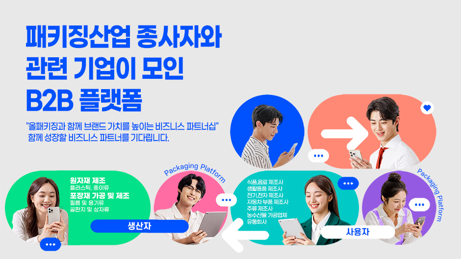 올패키징은 포장 원자재·가공·제조 기업과 제품 제조 및 유통기업을 연결하는 국내 유일의 패키징 전문 플랫폼입니다. 패키징산업 종사자와 관련 기업이 한자리에 모인 올패키징 B2B 플랫폼은 정확한 타깃 도달로 광고 효율이 높고 비용은 합리적입니다. 불특정 다수 노출이 아닌, 실구매자 중심의 정밀 타깃 광고로 브랜드 인지도와 실제 비즈니스 성과를 동시에 높이세요.