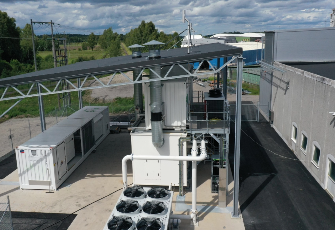 전해조는 재생 가능한 전기를 사용하여 물을 녹색 수소와 산소로 분리한 후 수소는 에너지 혼합물에 공급되어 용광로에 전력을 공급한다.