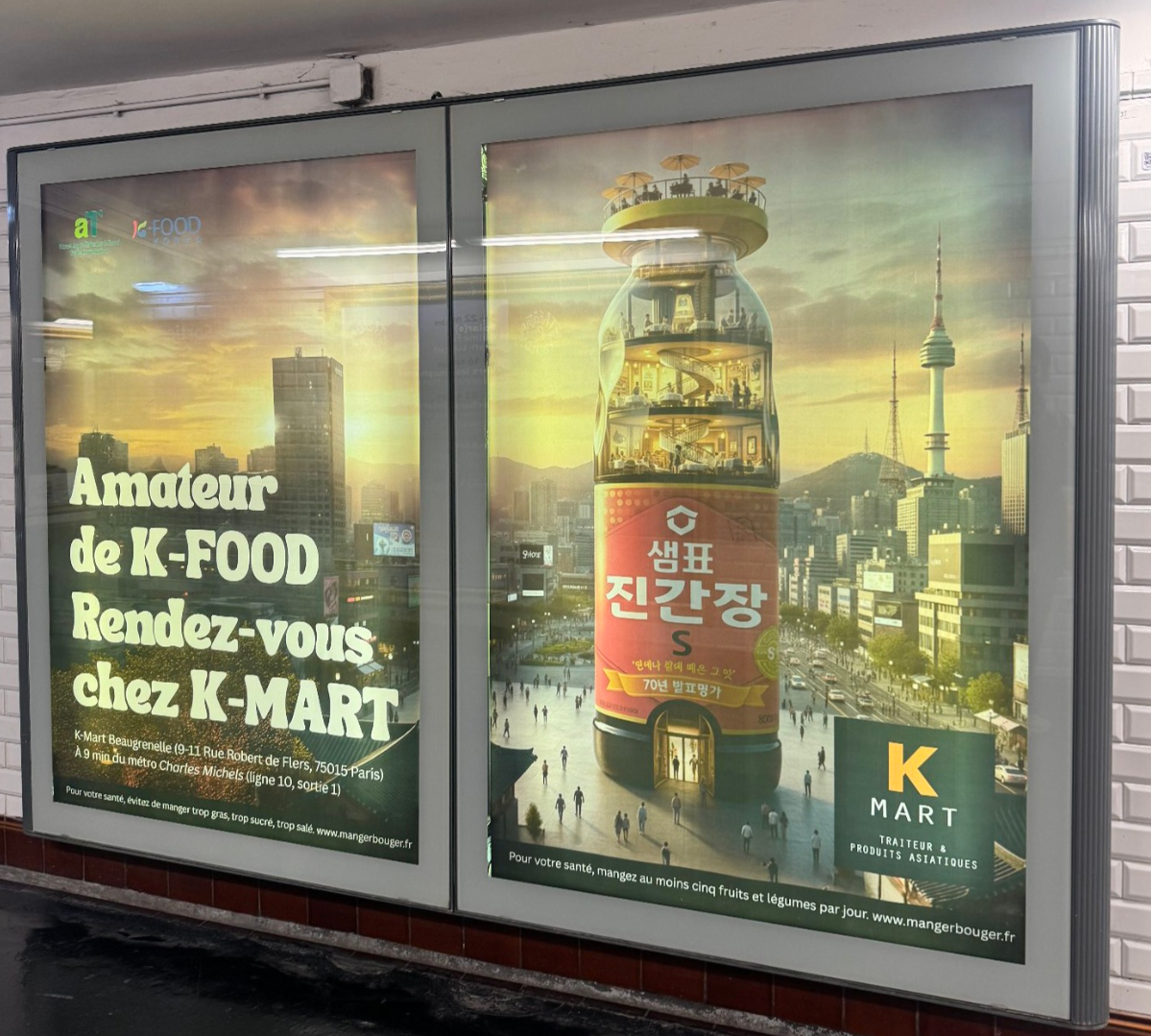 이번 광고는 프랑스 파리 중심가(4-8 rue Sainte-Anne, 75001 Paris)에 본점을 둔 한국 식품 전문 유통사 ‘K-MART’(대표 권순근)가 농림축산식품부와 한국농수산식품유통공사(aT)의 해외 판촉행사 지원을 받아 진행한 홍보 캠페인이다. K-푸드가 세계적으로 돌풍을 일으키는 가운데 한국의 맛을 상징적으로 표현할 수 있는 제품을 내세운 시리즈 광고의 첫 주자로 샘표 진간장이 선정됐다. 이번 광고는 프랑스 파리의 주요 상권인 1호선 ‘프랭클린 D. 루스벨트역(Franklin D. Roosevelt)’과 10호선 ‘샤를 미셀역(Charles Michels)’에 게시 됐다.