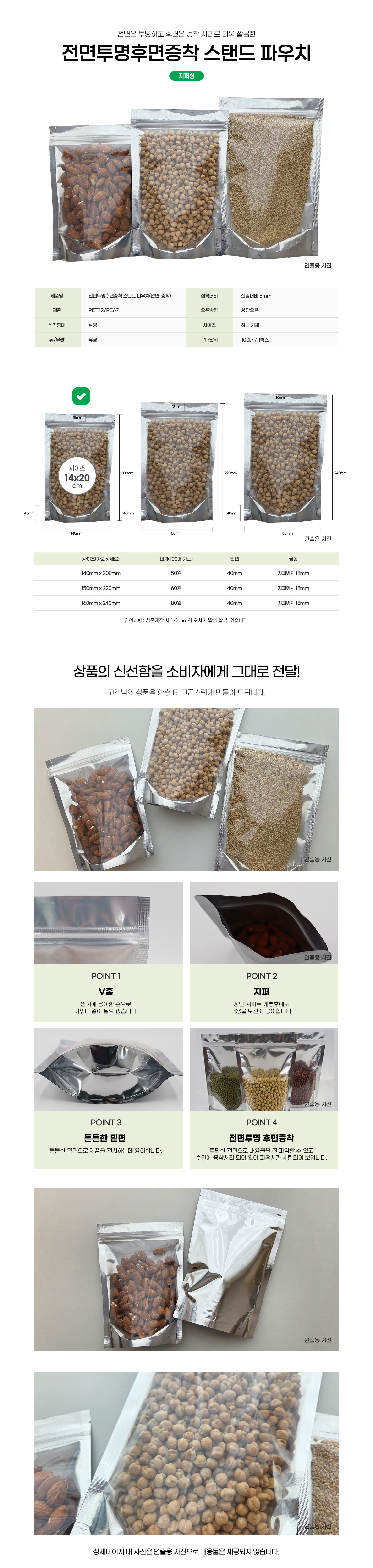 전면투명 후면은박 스탠드 14x20 (100매) 소분 봉투