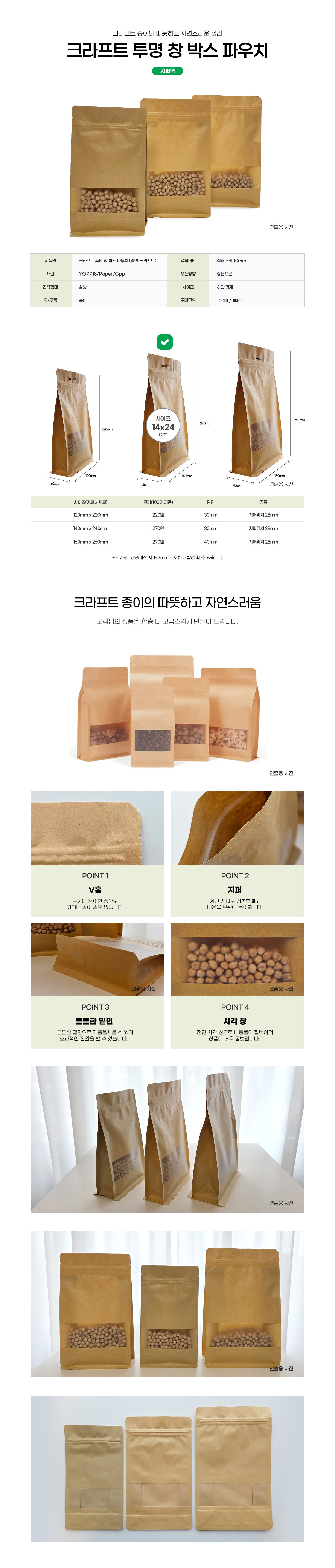 크라프트 투명 창 박스 스탠드 14x24 (100매) 소분 봉투 창봉투