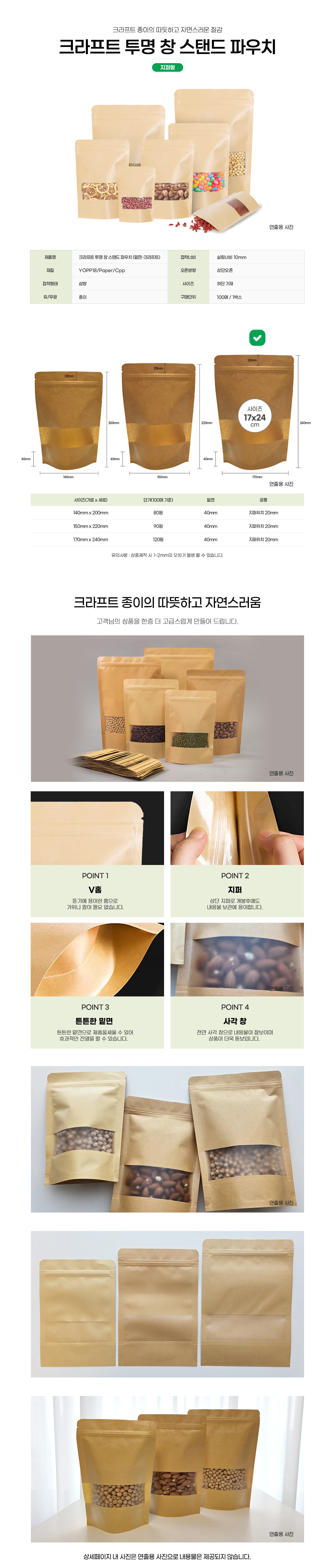 크라프트 투명 창 스탠드 17x24 (100매) 소분 봉투 창봉투