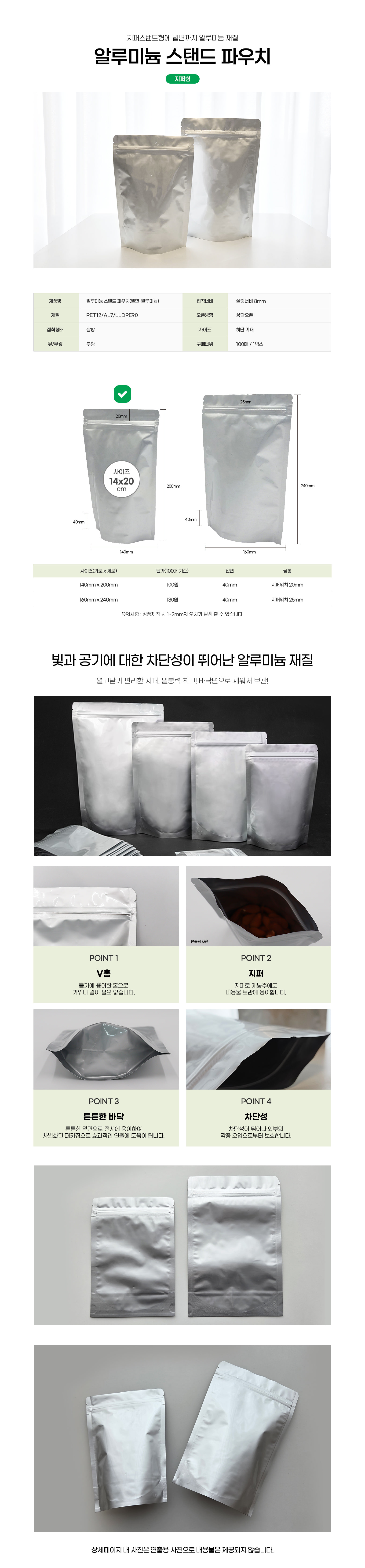 알루미늄 지퍼 스탠드 14x20 (100매) 사료 소분 봉투